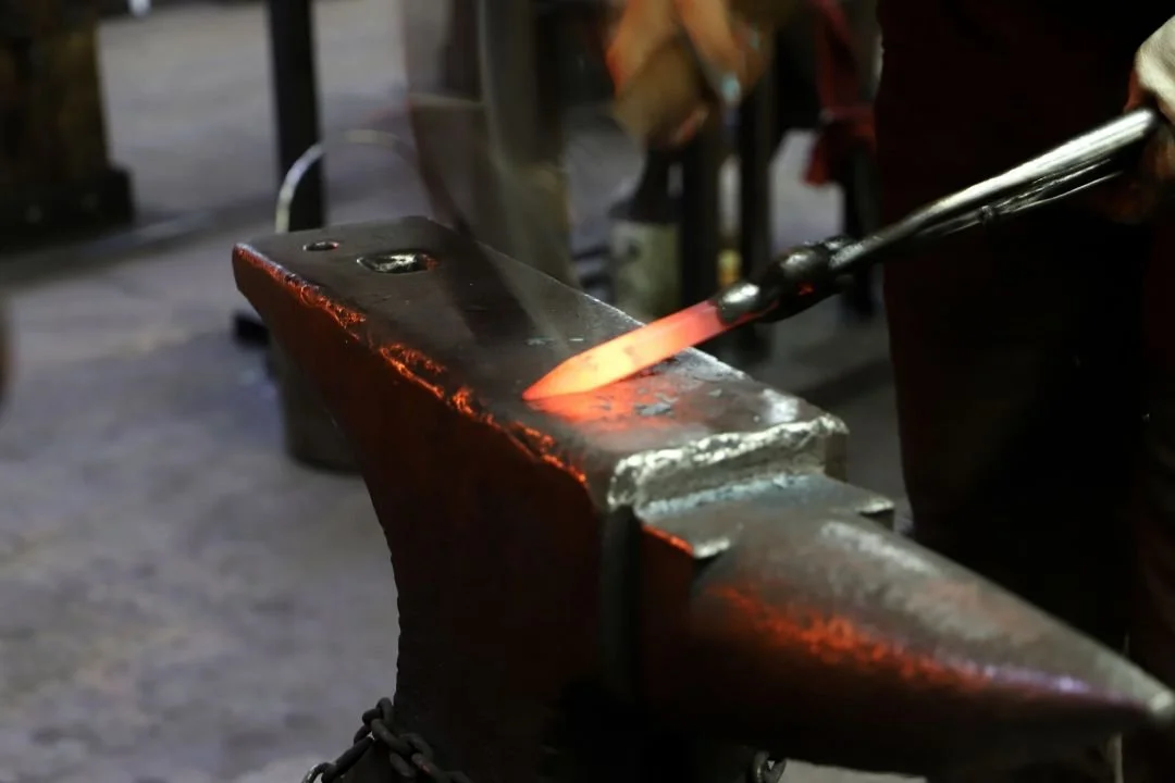 Create the first taper: On the anvil edge, draw out one end to a gradual taper (about 60–80 mm long).